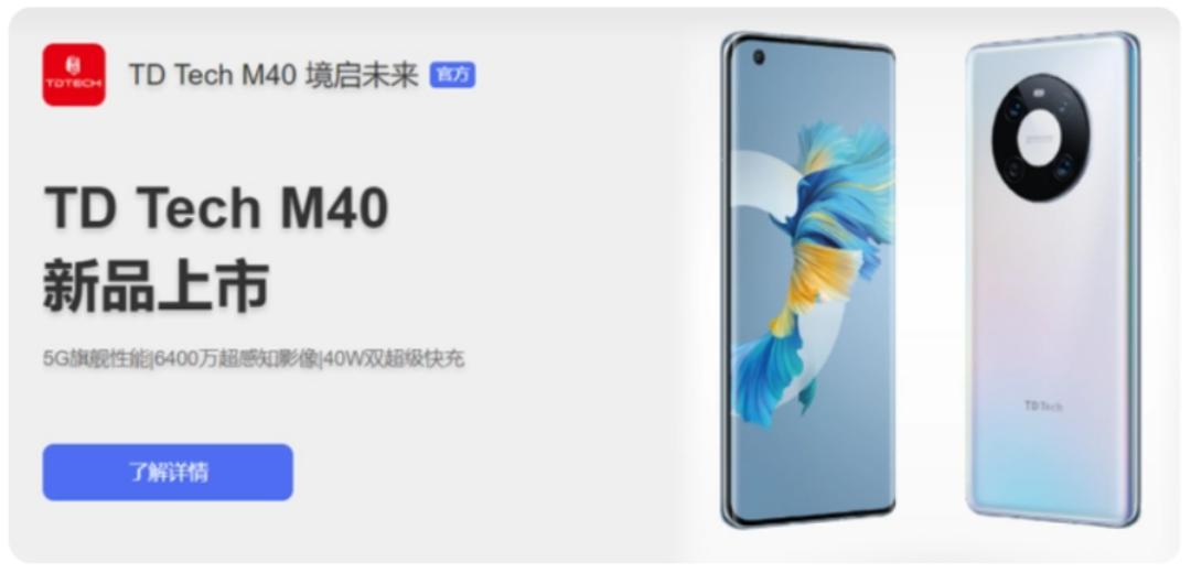 2022年5月,鼎桥曾推出TD Tech M40手机,因外观几乎与华为Mate 40完全一致,被称为“换壳”、“套娃”版的华为手机。