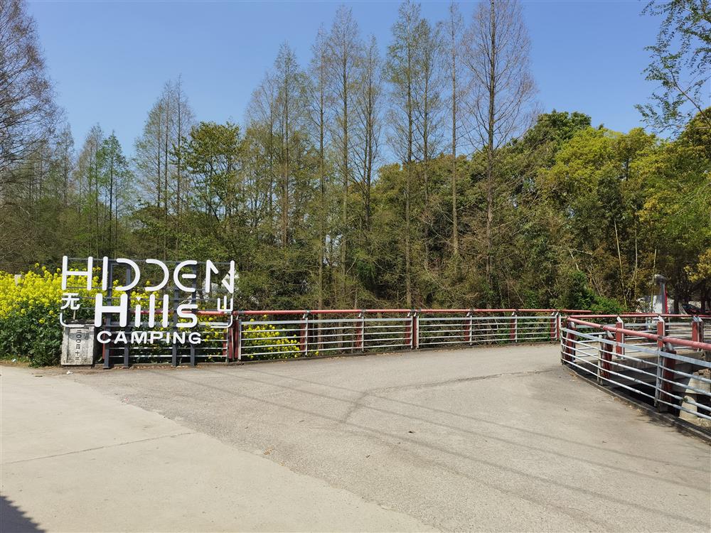 两片油菜花田中间,挂着“上海农夫果园”牌子处就是无山露营地的入口。