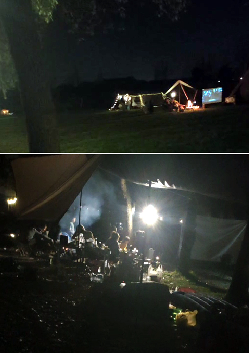 一些帐篷周边设施极为丰富,大大小小的桌椅、投影幕布、炭火盆一应俱全,可以想象前一天的热闹程度。