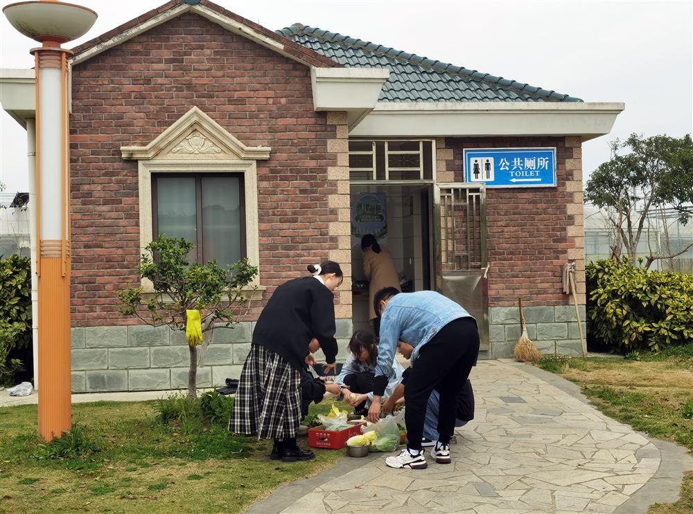 浦东新区法治主题园里,一群年轻人正“霸占”着公园厕所洗菜,准备烧烤的食材。
