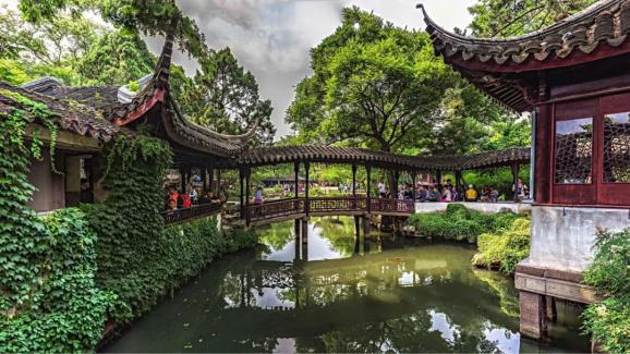 ©Kevin Dooley from Chandler, AZ, USA, CC BY 2.0, via Wikimedia Commons拙政园于明正德年间由御史王献臣所建,最初面貌可在文徵明手绘的三十一页《王氏拙政园记》中见到,但之后几易园主和园名,既做过苏州将军府,也曾是晚清八旗奉直会馆,最终形成了现在所看到的东、中、西三处园子。东花园开阔疏朗,西花园建筑精美,中花园的借景手法是苏州园林的精华所在。