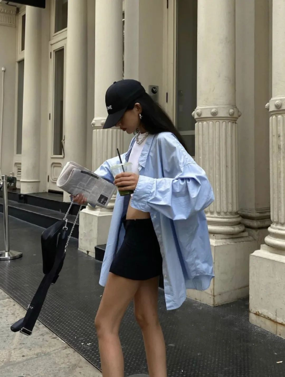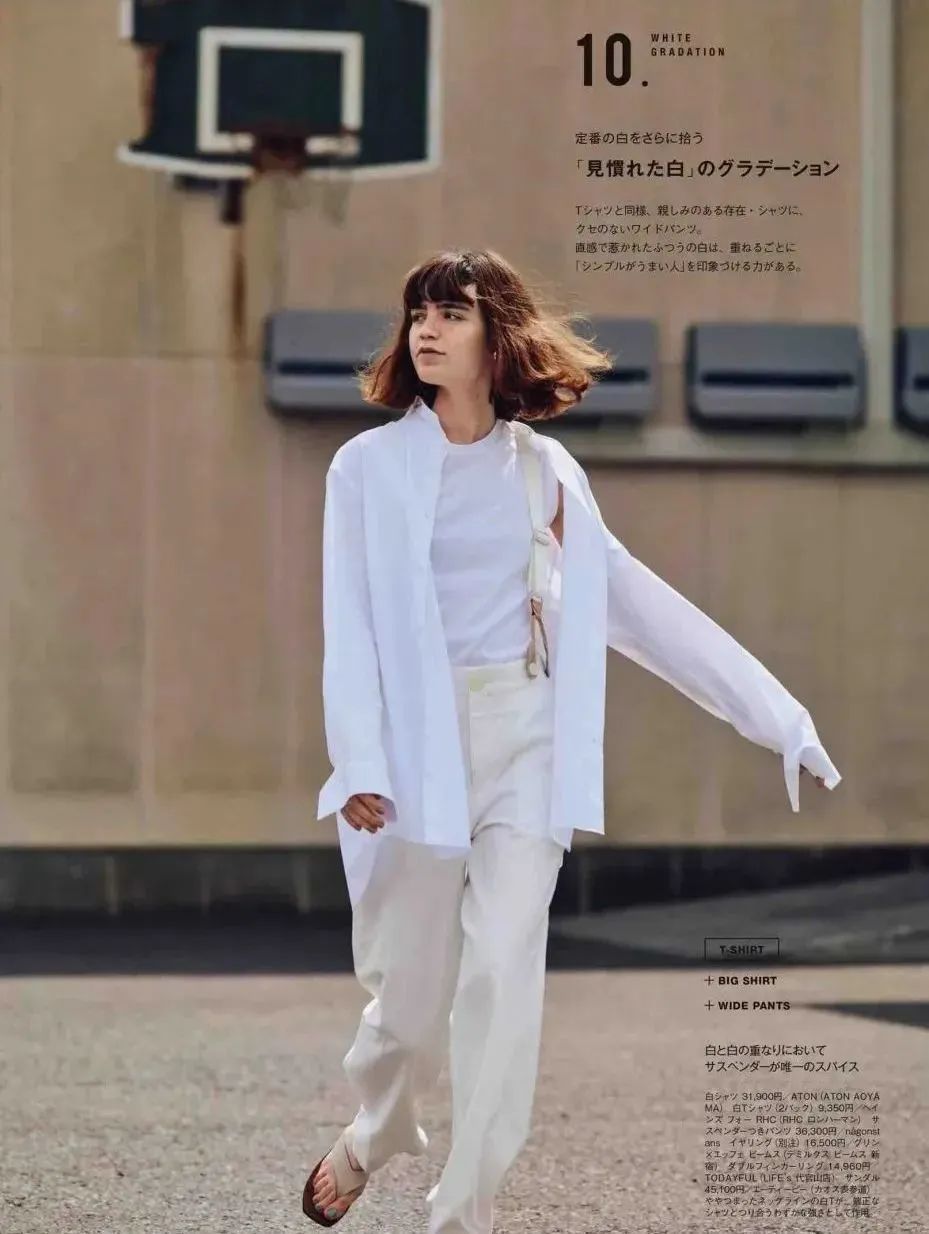 白t恤+白衬衫,将干净清爽风格贯彻到底。