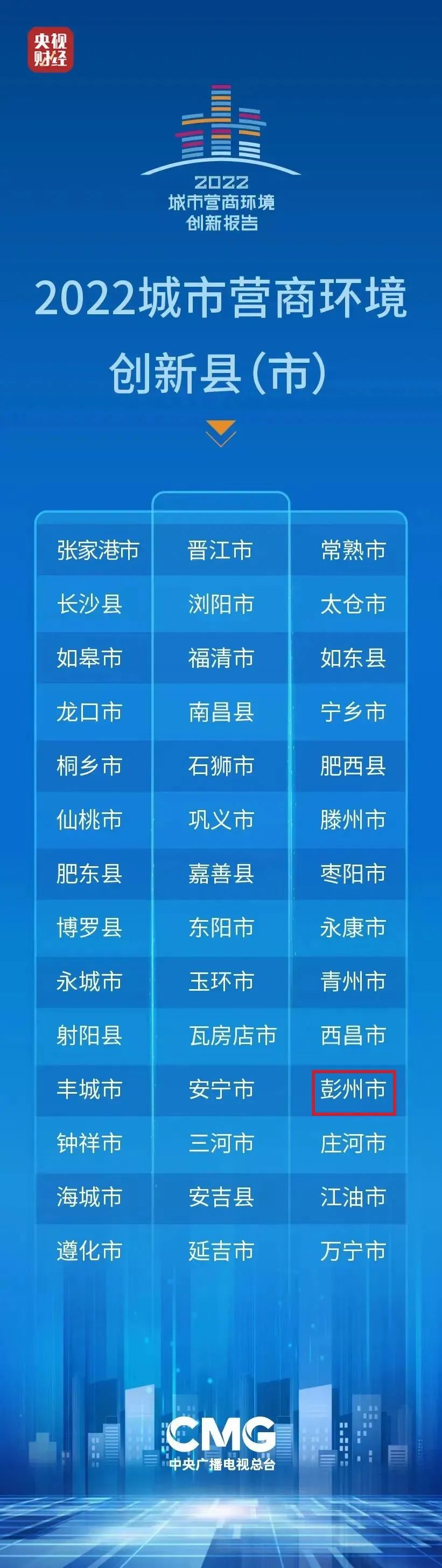 原标题:《彭州入选2022城市营商环境创新县(市)》