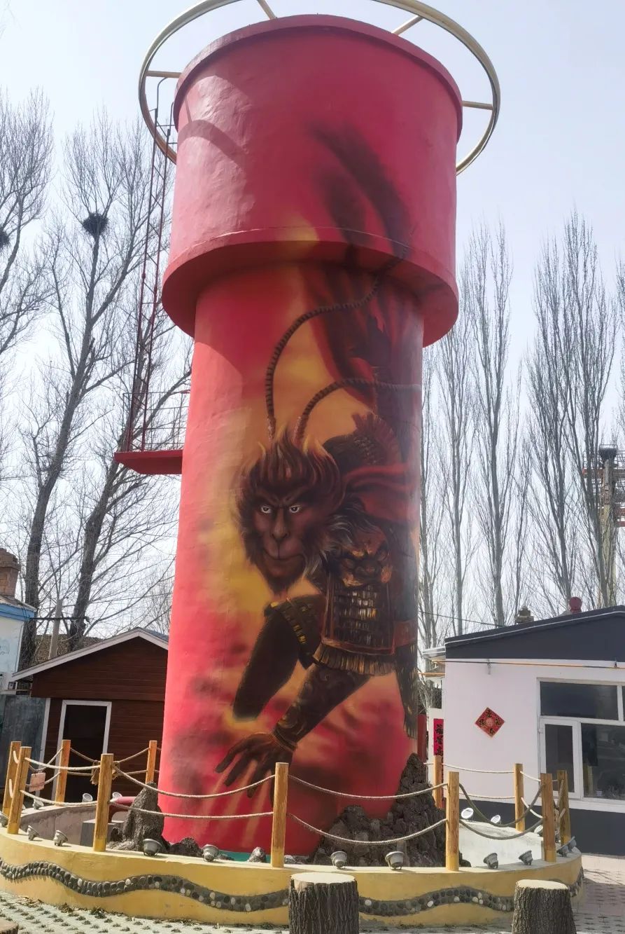 “金箍棒在手才有了孙悟空的威名。这里原本是村内5G信号塔,塔高40米,取23米喷绘成高入云端的如意金箍棒,在这里称为‘5G金箍棒’……”在张家口经开区姚家房镇刘家坑村口,记者每次驻足墙画之前时,充满动画色彩的墙画都会应景“出声”,让人仿若置身童话世界。