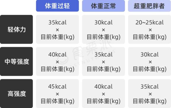 对于轻体力活动的人(平时活动以坐为主),每天需要的热量可以用目前的体重,乘以35得到。