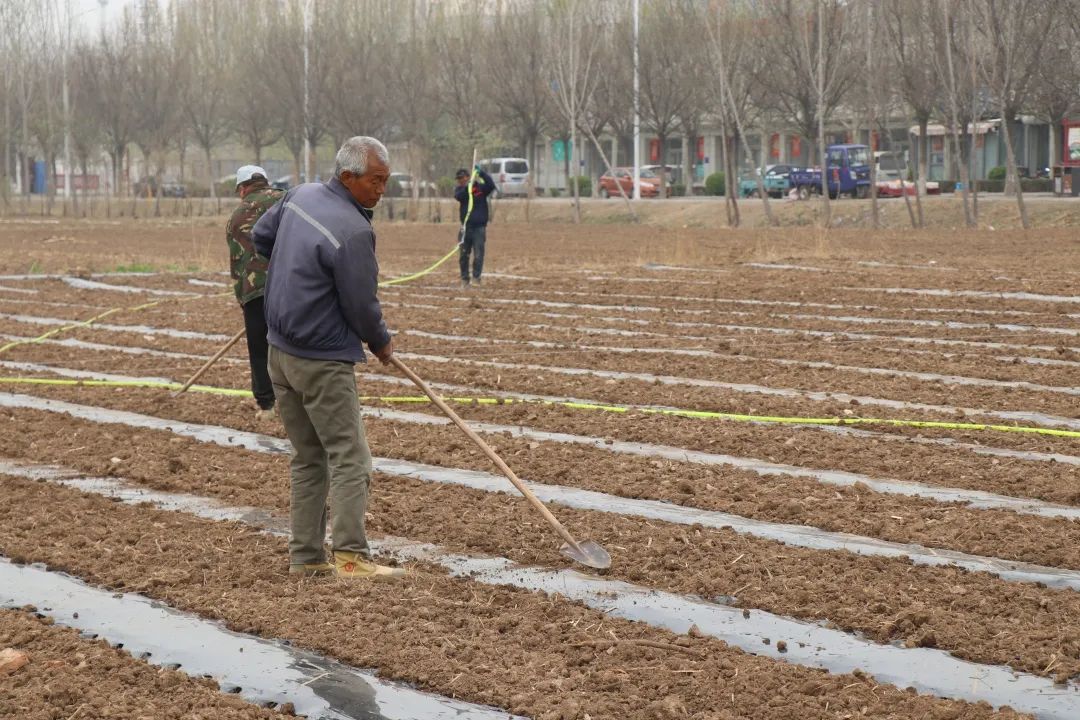 春意盎然,在陈咀镇的鲜食玉米试验田里,工作人员忙着播种、松土,一派繁忙的春耕景象。