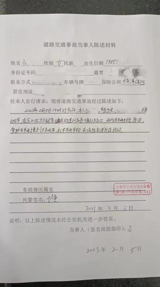 占女士在事故后的笔录材料