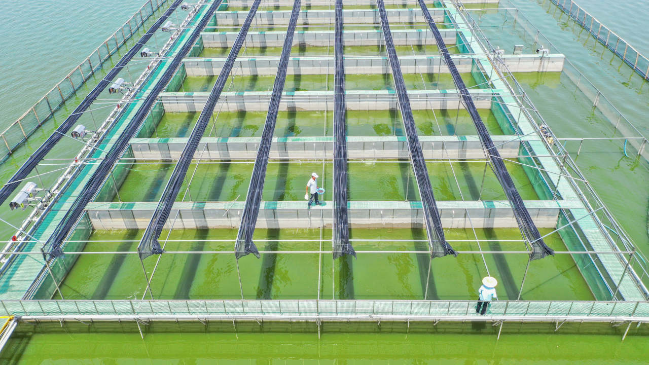 记者放眼望去,几十条跑道位于水塘一端,与水塘相连,一字排开的养殖水槽两头装有拦鱼栅,一头的“推水增氧”装置让塘水实现循环流动,另一头的吸污装置则时刻收集鱼粪残饵。如今,靠着这块生态绿色金字招牌,上海市场已经占到了该基地跑道鱼外销份额的大部分。