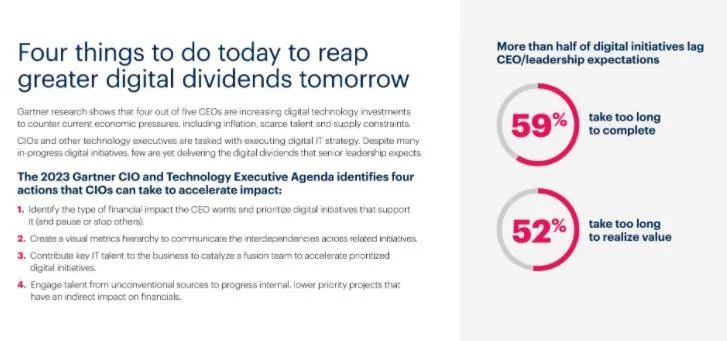 Gartner总结了确保技术投资在2023年获得数字红利的4项行动: