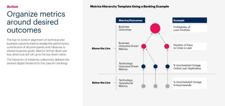 允许您围绕业务成果组织和衡量的指标层次结构将揭示团队和计划的关键绩效贡献。