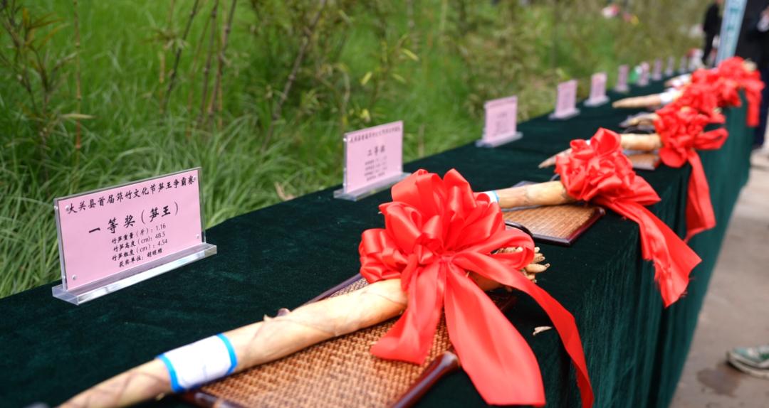竞争激烈的还有竹王、笋王争霸赛。来自大关全县的筇竹种植户,把自家竹林里采挖来的竹子、竹笋放在一起看外形、比重量、拼质量,最终决出胜负,斩获竹王、笋王的种植户成为了大家追捧的明星。