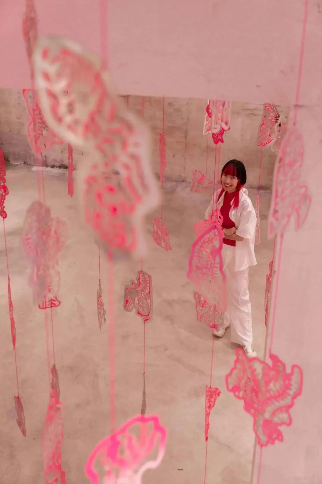 在其他人眼里,大面积使用粉色也许是陈粉丸作品里凸显出来的明显风格。但对她来说,她将自己的风格定义为“极繁主义”。剪纸本就没有极简的一面,回归到历史上,剪纸是种功能性艺术,人们将美好的愿望安放在它身上,希望它能发挥一定作用,追求的是一种“热闹”。对于传统剪纸的这种“吉祥物”内核,陈粉丸在很多作品中都将其保留了下来。
