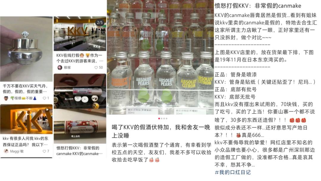 此外,在第三方平台上,有不少网友发帖打假KKV门店真假混卖,甚至有网友称在KKV门店买到“假酒”导致一晚上没睡。