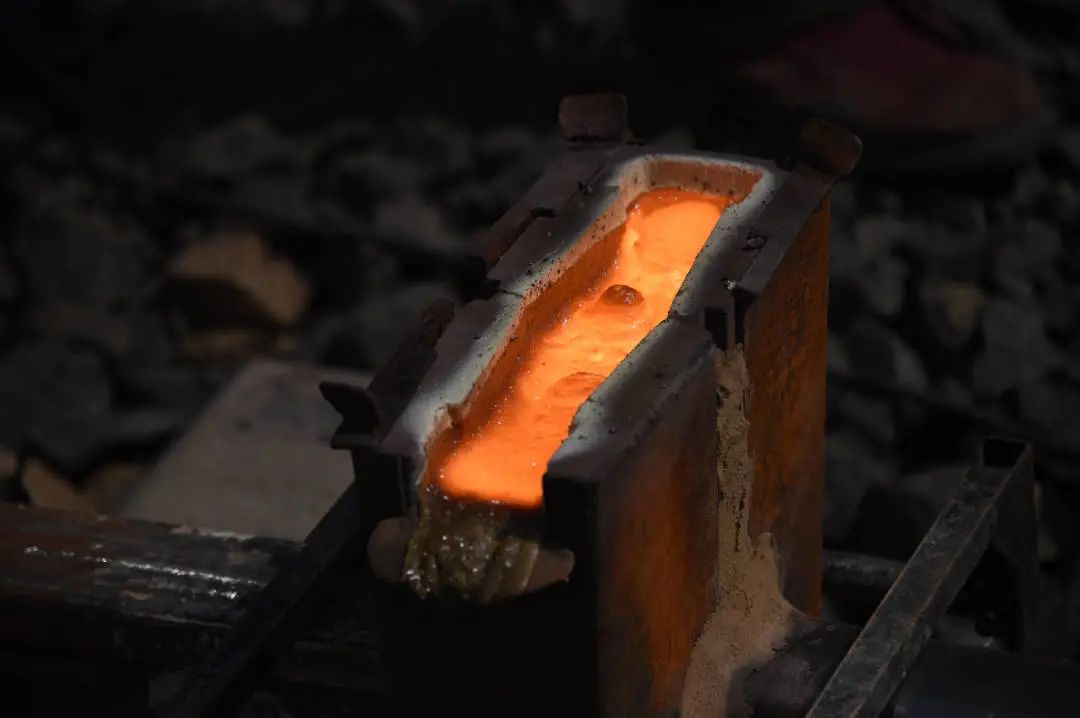 用焊枪将模具预热到近1000℃引燃坩埚后“咕噜咕噜”冒起白烟