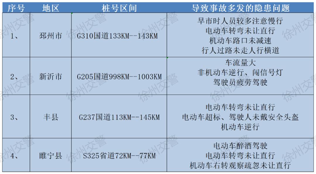 4月11日,徐州交警公布2023年第一季度全市事故多发路段,广大驾驶人朋友途经这些路段请注意观察道路情况,严格遵守交通法律法规,控制好安全车距和车速,安全文明出行!