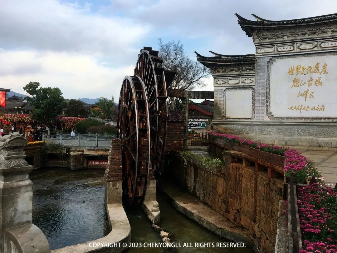 午休了一会儿之后,下午3点出发去丽江古城。向酒店保安打听了路线,走地下商场过去更快。古城免费的,刷身份证进去就可以。▼标志性大水车