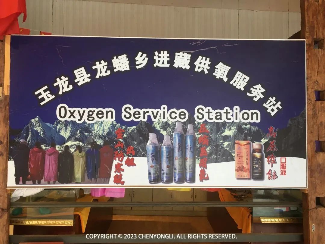 看到这里有卖早餐、水果和氧气等物品,我还特地问了下领队是否需要备氧气,领队说一般不建议,这种小瓶的吸不了几口,一开始就想着吸氧气会容易形成依赖,而且大多数人也不需要吸氧气的,雨崩里面含氧量非常充足。▼观景台入口