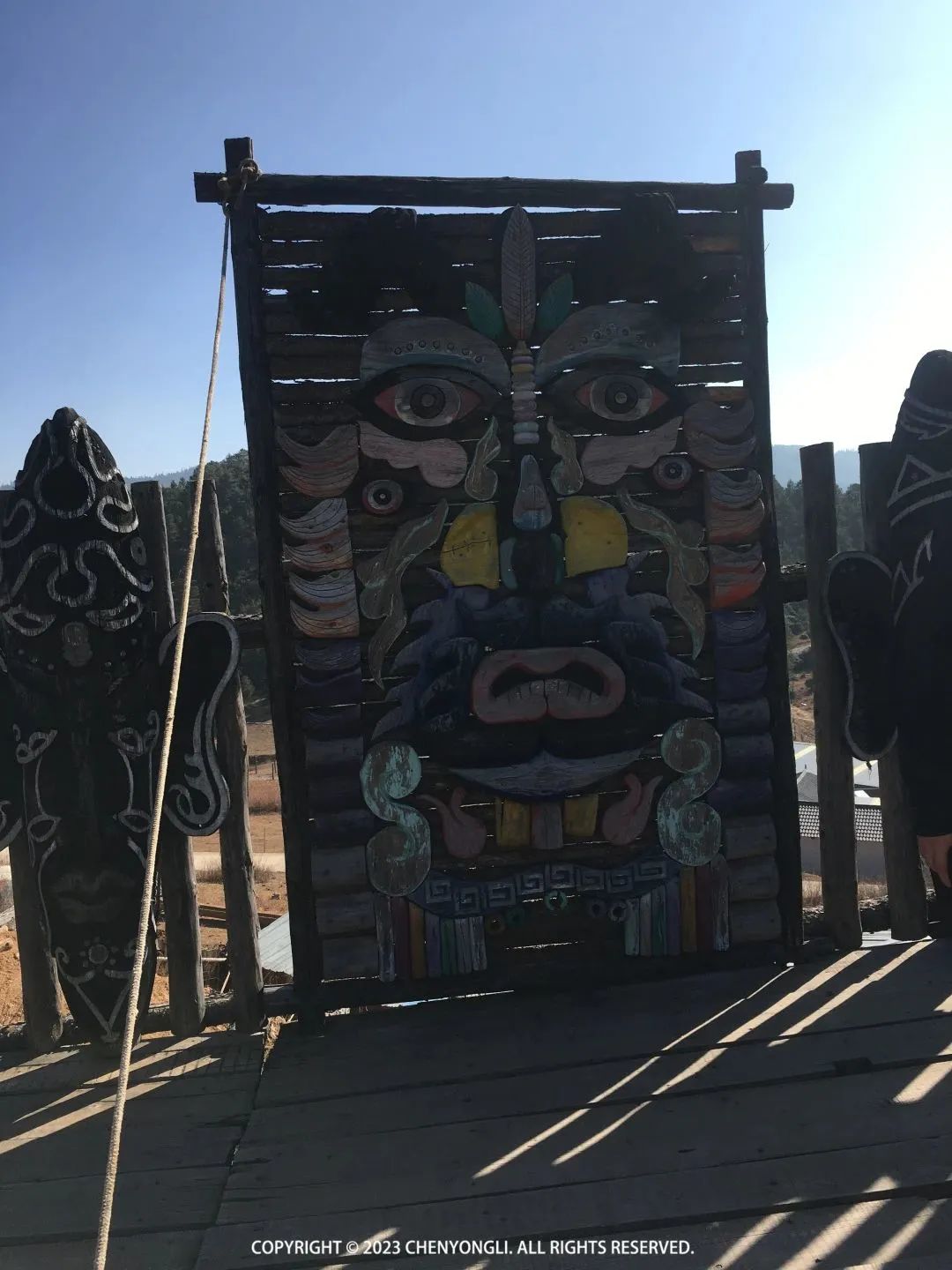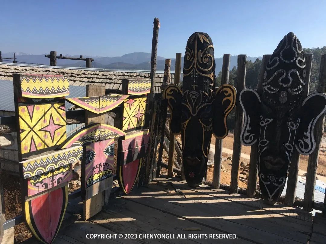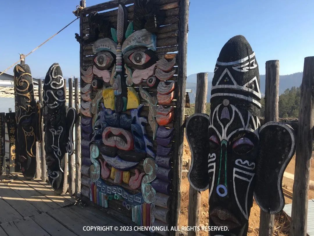 10:25 到达哈巴雪山观景台,这里可以远眺哈巴雪山。观景台有几个很有意思彩绘,像是某种图腾,可惜我看不太懂,发出来给大家看看吧。