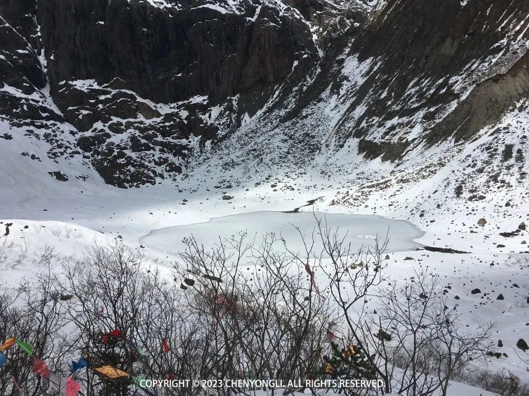 13:00 经过再一次冲刺,第一小分队到达胜利到达冰湖。▼冰湖