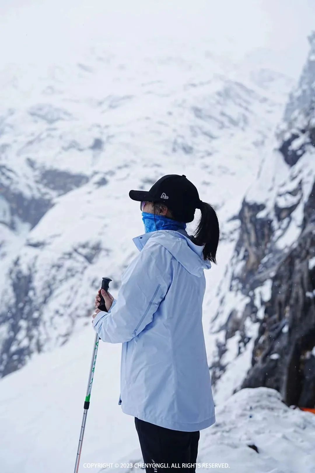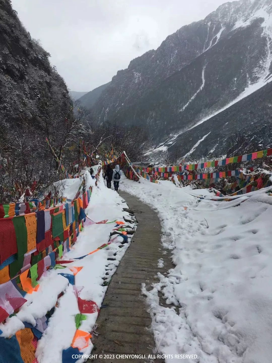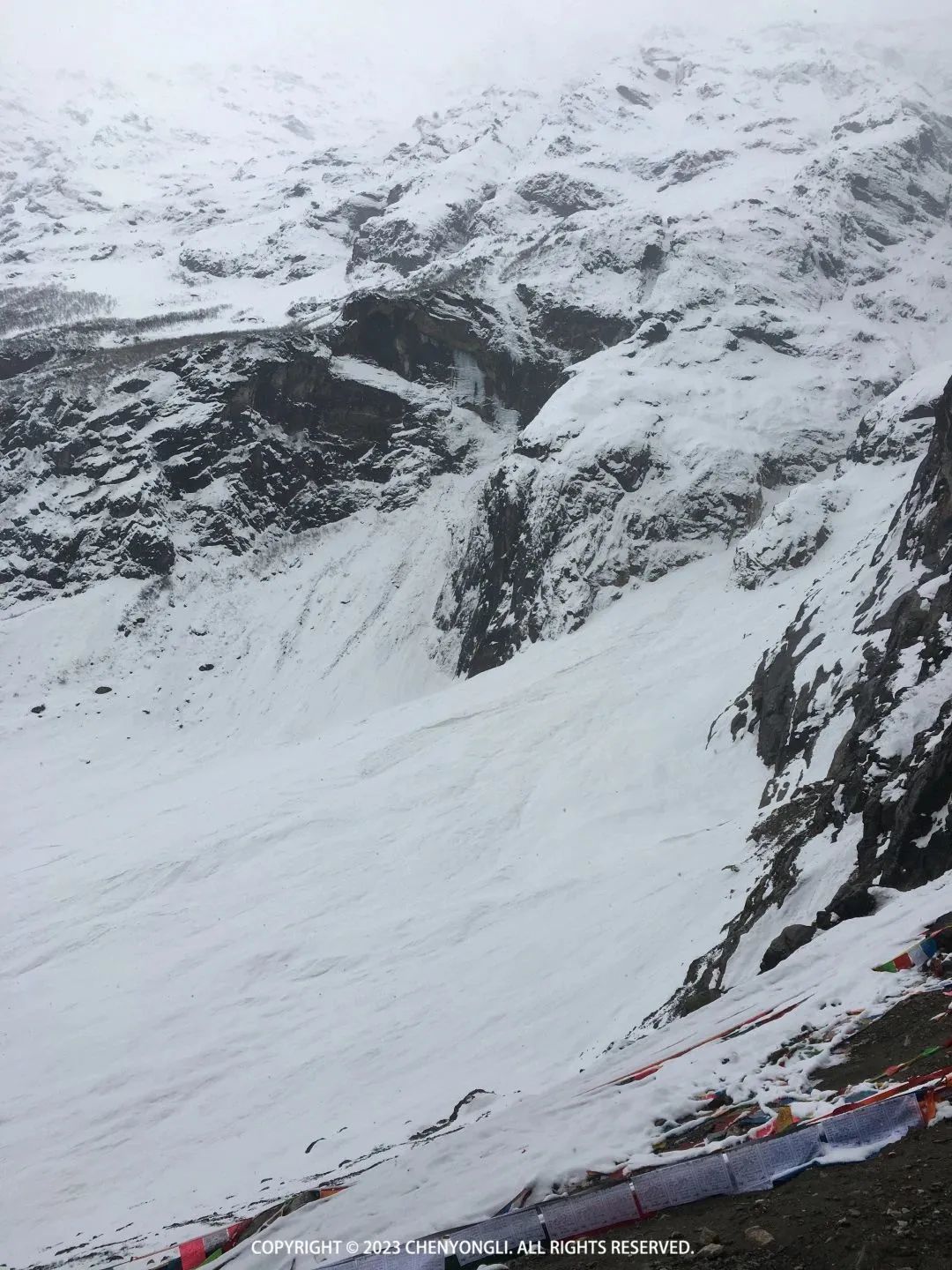 14:00 再次回到大本营,让摄影师拍了几张好看的照片。然后一路回撤,下山途中,天空中开始下起雪花,而此时雨崩村大太阳,正如领队所说,我们此行会经历春季、夏季和冬季,就是这是属于雨崩的魅力。
