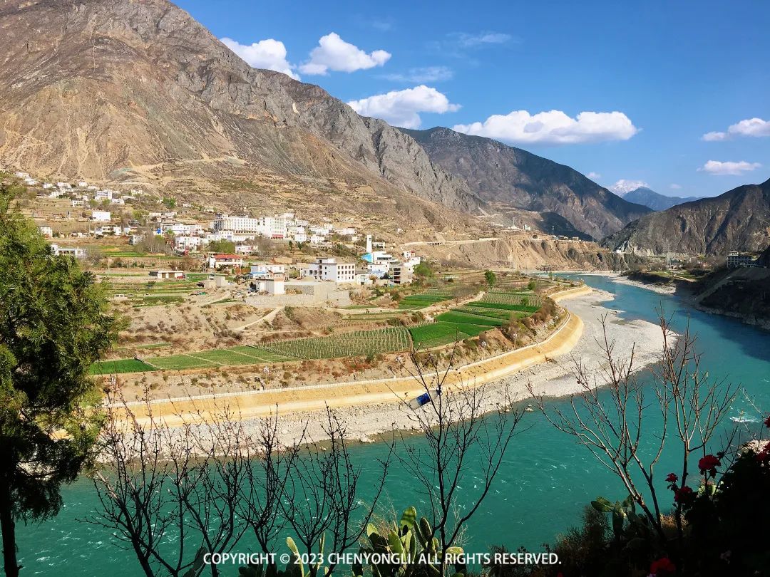 吃过中午饭,开始返回香格里拉了,中途休息时拍到的金沙江,很漂亮(江的这边属于迪庆,另一边属于四川的甘孜)。来的时候看到这里不适合种植庄稼,还问了下当地人以什么为生,原来除了旅游,这里还种植葡萄,还是很出名的法国葡萄,用于酿葡萄酒非常出名,可惜没看到!