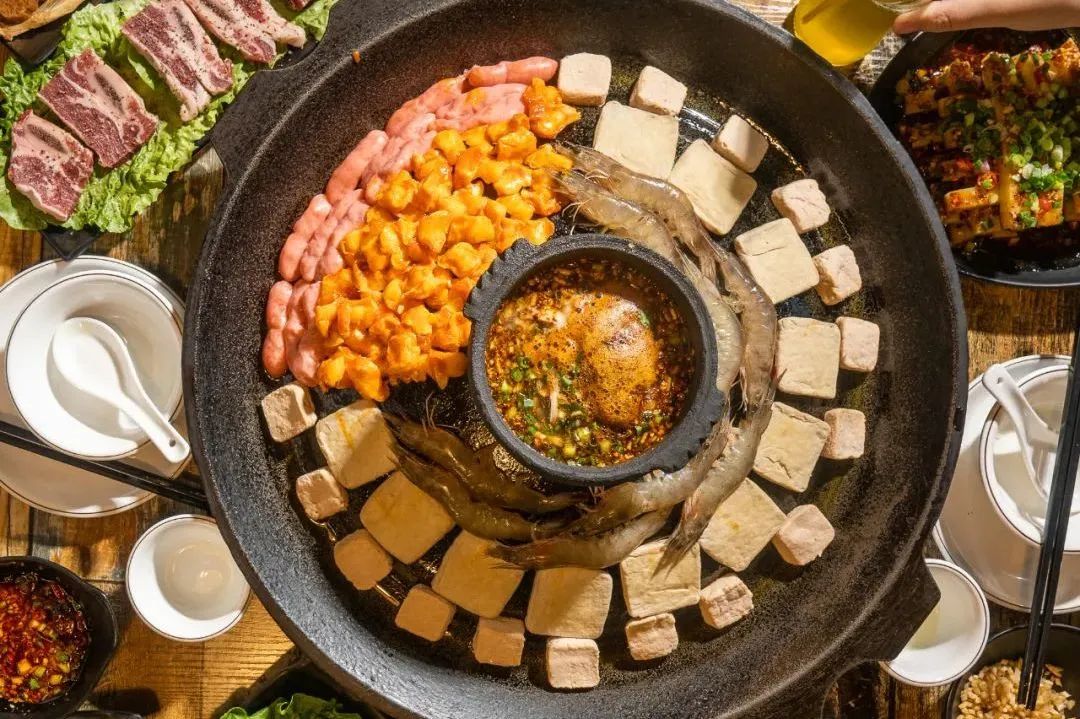 一口土砂锅,一碗活油蘸水,这就是活油烙锅。烙锅堪称“无所不烙”,无论是什么食材,都能在这方天地间发挥出极致美味。烘锅逐渐加热,高温下的蘸水咕噜咕噜,猪油便“活络”开来,融在蘸水中的活油口感鲜活,富有层次。苦荞茶