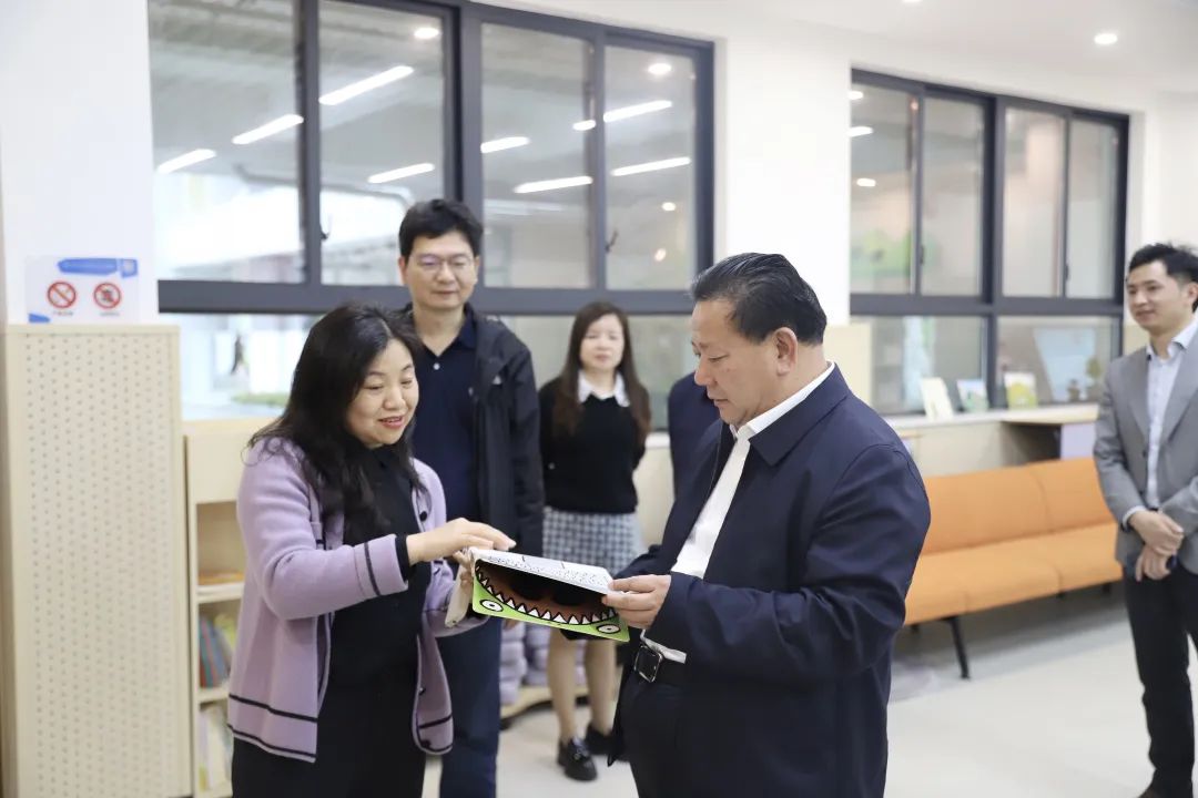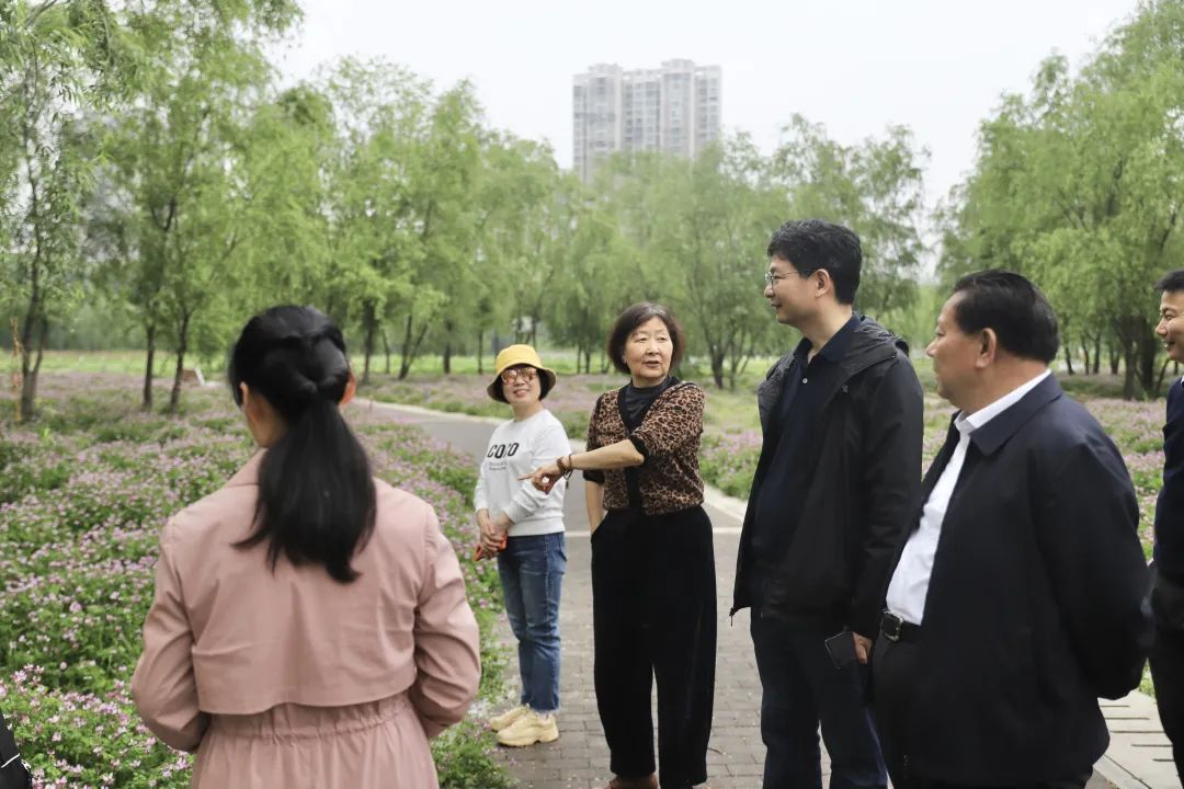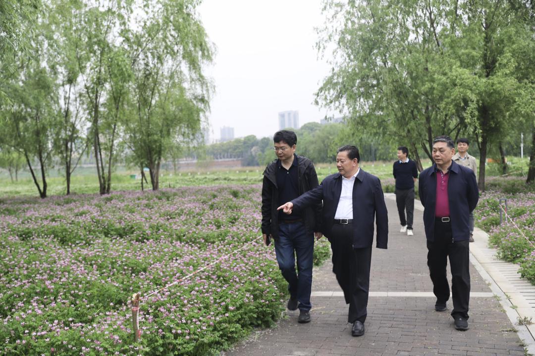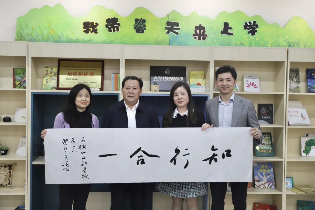 鄢福初一行首先来到长沙市实验小学马栏山文创学校,参观了自制图书、装饰画、扎染等学生作品展览,对学生的文化作品表示赞赏,并执笔写下“知行合一”,希望马栏山的下一代能更好地传承中华优秀传统文化,实现“文化自信,知行合一”。随后,鄢福初一行来到马栏山鸭嘴公园,纷纷赞叹漫漫花海,并与正在拍照赏景的市民朋友们亲切交谈。