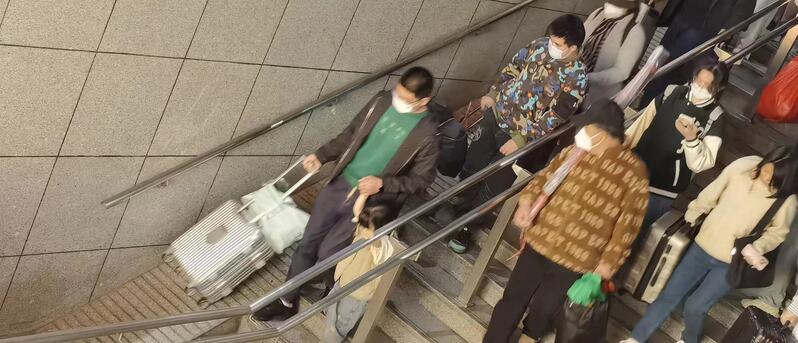 旅客扛着行李走45级台阶,上海火车站这段地下通道为何这么难走?