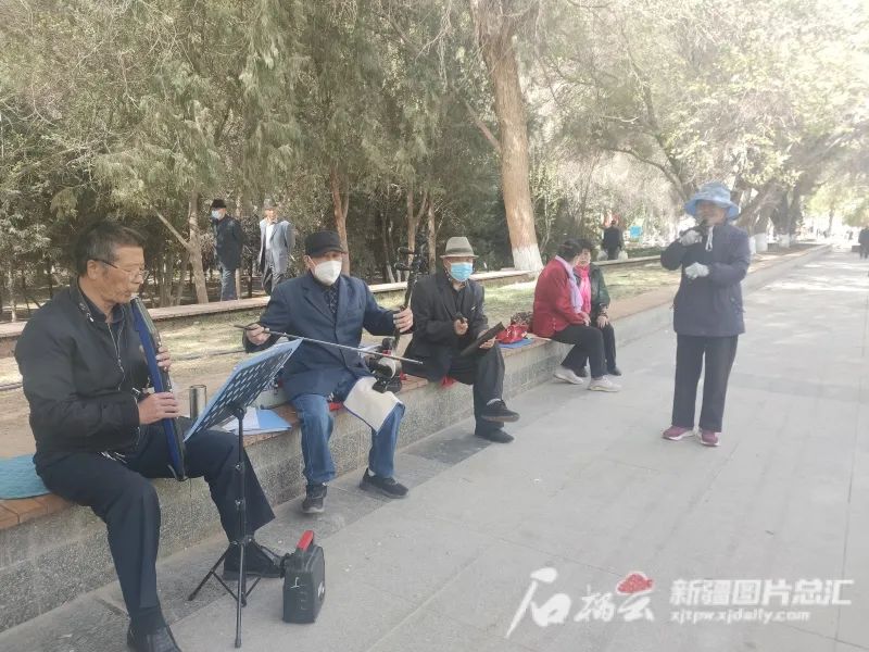 4月11日,喀什人民公园一角,豫剧爱好者共聚一堂唱戏,乐此不疲。石榴云/新疆日报记者韩沁言摄“这公园建得就像一个小氧吧,我每天都要来坐一坐、走一走。”作为老喀什人,马木提·艾山感叹身边的变化。“空气好、环境美,这公园瞅着就觉得人也美了、心也美了,幸福呀!”