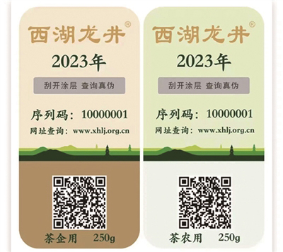 “专用标识分为‘证明标N(茶农用)’和‘证明标Q(企业用)’两种样式,相当于西湖龙井茶的一张‘身份证’,上面包含了使用主体、年份、规格、编号、防伪信息等内容。”景区执法队提醒,龙井茶大量上市时期,购买正宗西湖龙井需认准专用标识。
