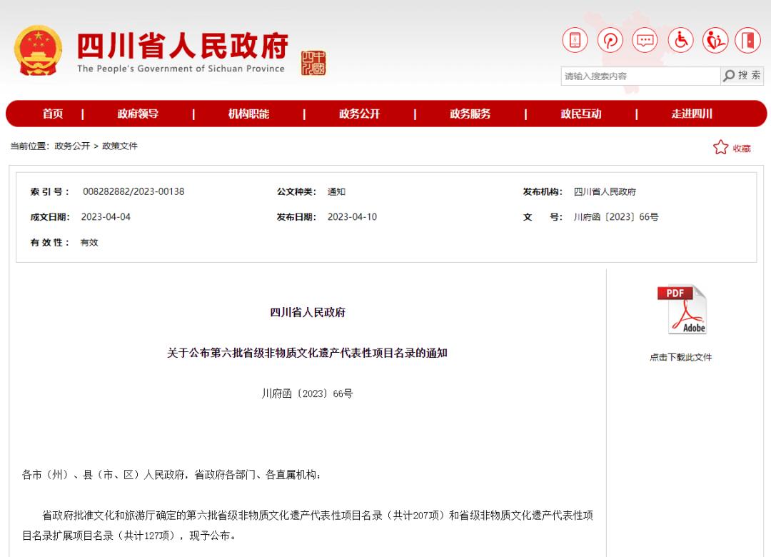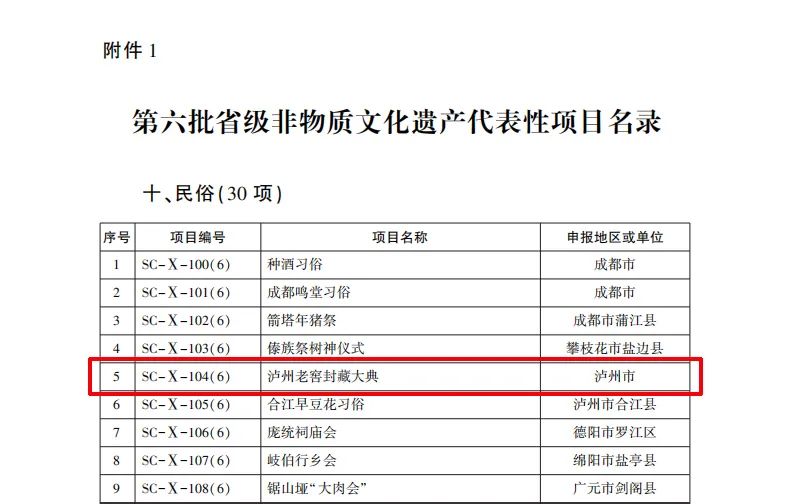原标题:《喜讯!泸州老窖封藏大典入选第六批省级非物质文化遗产代表性项目名录》