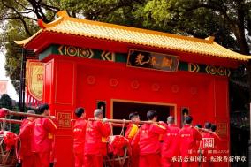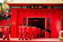 封藏大典以红、黄色为主色调,庄重肃穆,从人员着装、现场礼仪、道具设置等,多个角度营造古朴庄重的特色氛围。在仪式环节的设置和呈现上,主体包括祭祖仪式和春酿封藏仪式,拜师仪式融入在祭祖仪式的祖训环节当中。祭祖仪式