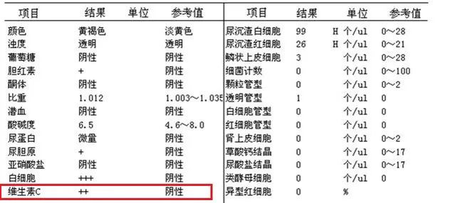 其实尿常规中有这一项,并不是为了提示什么疾病,而是为了排除干扰,帮助医生判断其他指标的结果是不是可信,是不是受到了维生素C的干扰。因为维生素C具有还原性,而尿常规中有些项目的检测原理就是氧化还原反应,可能会受到影响。