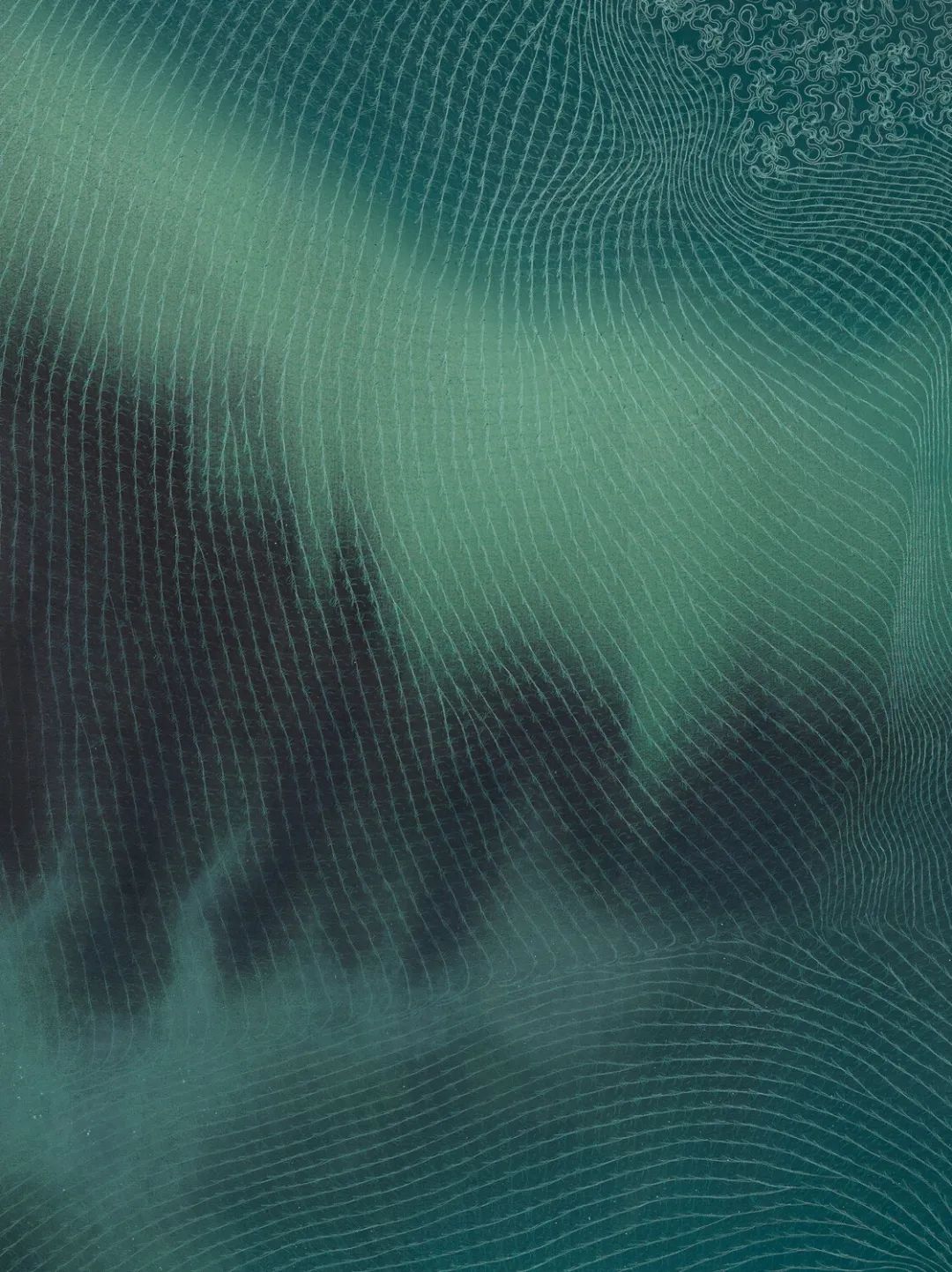 这一系列微弱、抽象的纹理记录着艺术家呼吸的起伏。无论这种记录以何种方式出现,它们都是开放且集中的。当艺术家的能量连接着呼吸成为切实存在的作品,将观者裹挟进入一段对话中,绘画及其所描绘的情感之间牢不可破的关系也被打开了一个空间。在那里,似乎有限与永恒、瓦解与重生都得以暂停,他们、她们,或是我们之间的差异也褪去了颜色,发展成为一个更广阔文化交汇的所在。