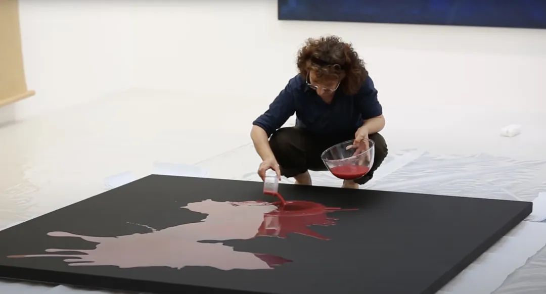 施拉泽·赫什阿里创作过程,截取自艺术家工作室探访视频,2017 ©施拉泽·赫什阿里,图片由里森画廊提供