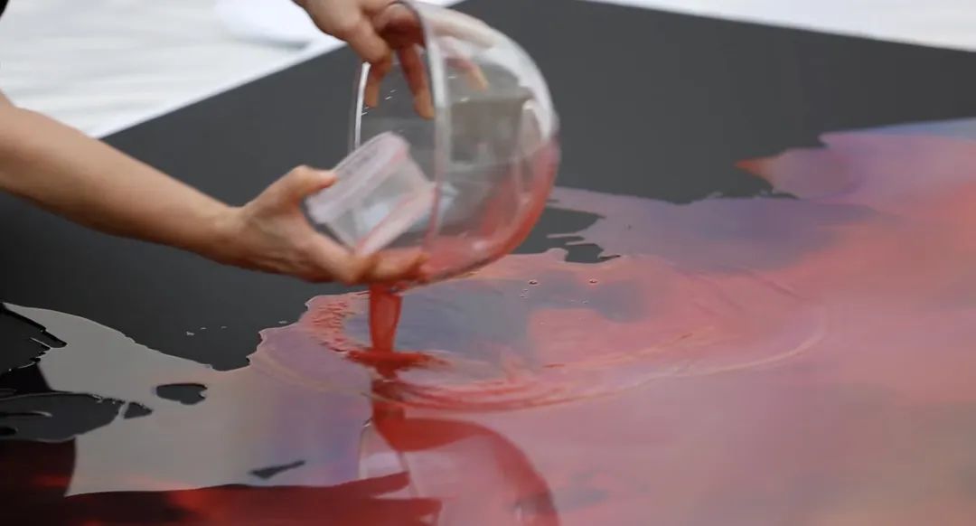 色彩的语言在赫什阿里的创作表达中编织着,不仅成为存在的象征,也作为生命自然最原始的起源。画作中如迷雾般的颜色,启动了感官意识的第一道闸门。红色在画面边缘褪去,又在另一处随机的位置变得浓烈,好似在自然界耗尽了生命中的每一滴水,又在久旱后被给予甘露。这是一种松散却极具光泽的生命力。潜伏在画作细微纹理间的呼吸,并不企图用平静的情绪去否认自身的独特性。艺术家的自我在缩小,感知则在扩张。在表达即将爆发的临界点,围绕着根茎的脉络与繁复的褶皱也有了思想表达的归宿。