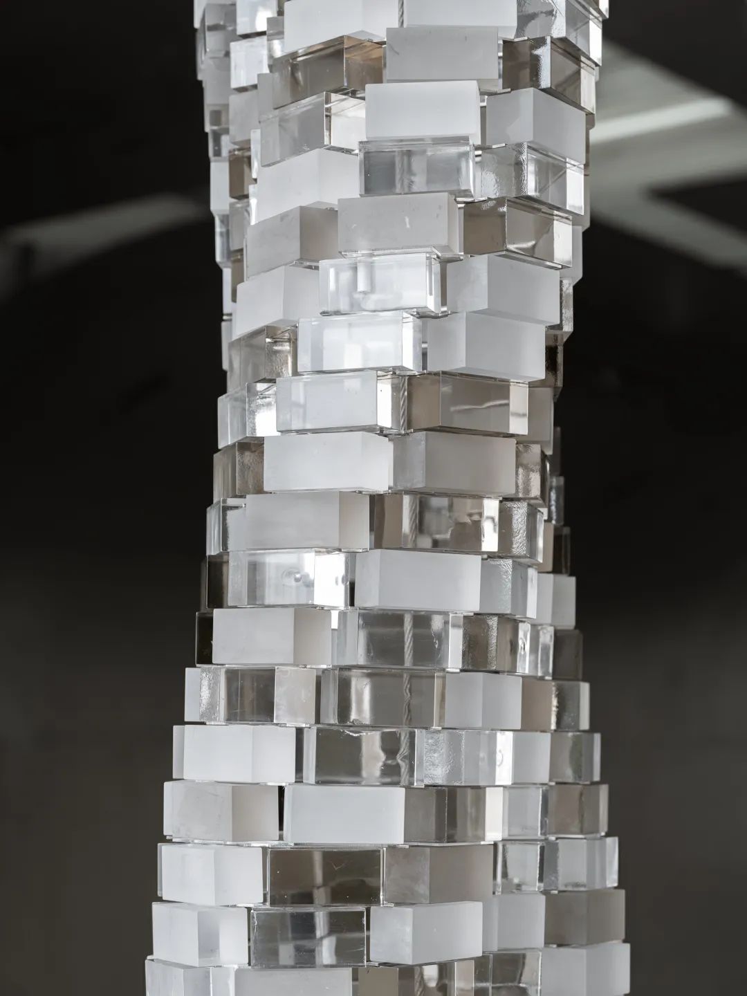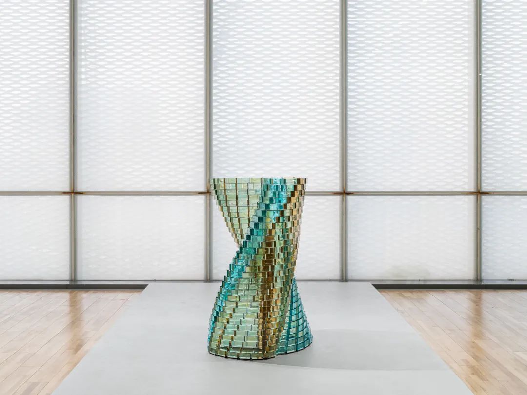 展陈动线的后半部分呈现了赫什阿里的几件于2022年创作的雕塑新作,从《心灵》、《裂解》、《正是如此》到《漩涡》,这些棱角分明的刚性玻璃块所呈现出的动态感,是从某一具象形态延伸出的波动与回响。这些作品呈现出一种区别于规范雕塑结构的形态,如同莫比乌斯环一般旋转、扭动着,试图在垂直空间中打造某种韵律性;又好似立于某一平衡点上坚守着秩序,但每分每秒都有可能跌入纯粹的分裂。