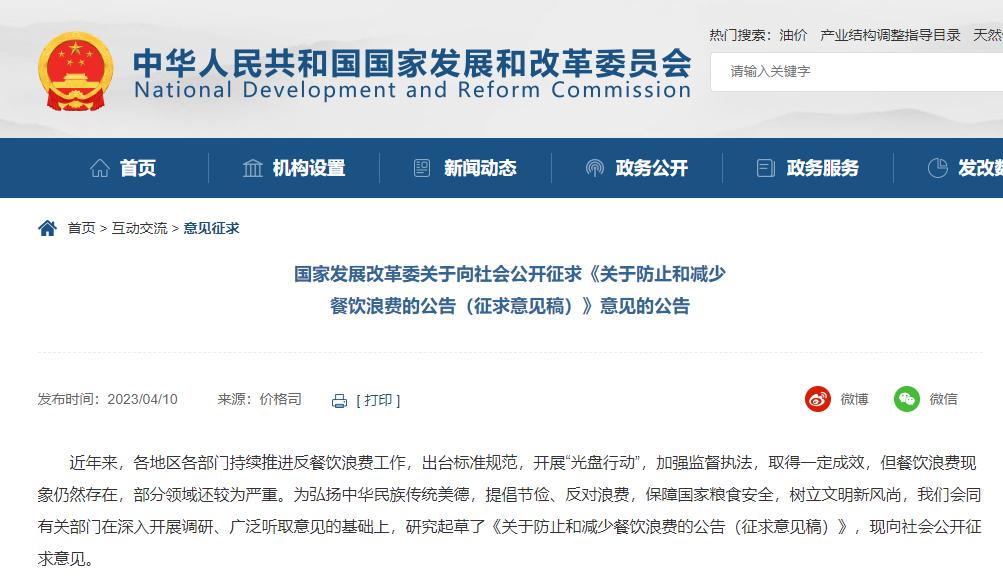 为弘扬中华民族传统美德,提倡节俭、反对浪费,保障国家粮食安全,树立文明新风尚,国家发展改革委近日公布《关于防止和减少餐饮浪费的公告(征求意见稿)》。根据公告,有关部门对宴会套餐特别是酒店宴会套餐、单桌1500元以上(不含酒水)宴会套餐实行重点监管。