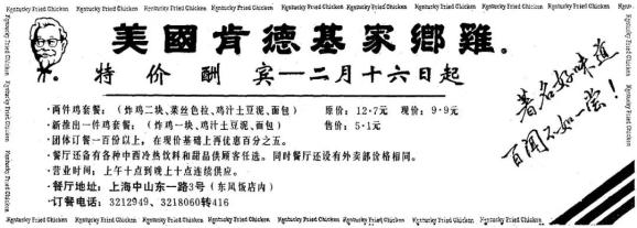 这是上海第一家肯德基开业时的优惠套餐价格。