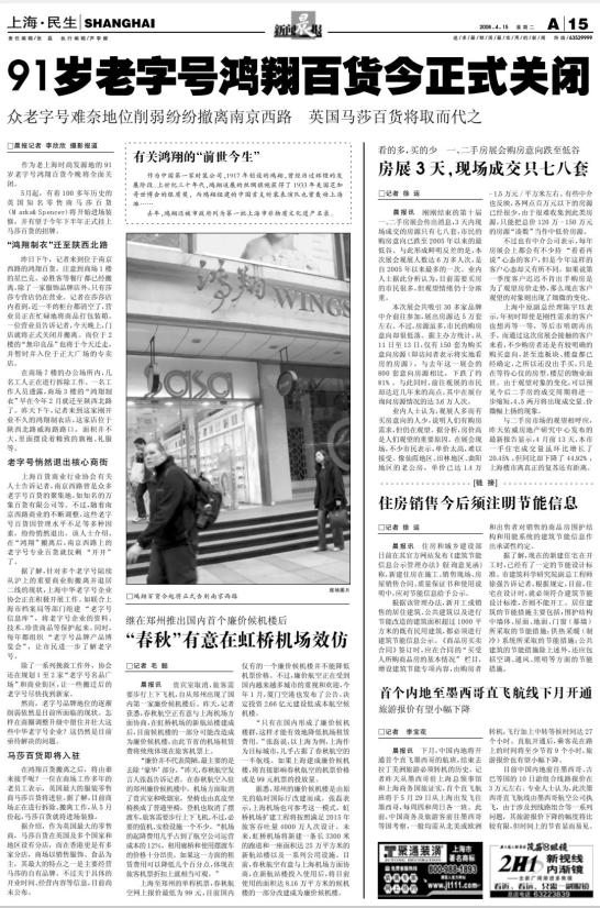 鸿翔百货关闭在它开业的时候,曾经有商业地产专家表示,原鸿翔百货所在的王家沙商区一直以来都“因为缺乏领头羊而略显人气不足”,专家说马莎百货将带动起王家沙商圈的商业氛围,并与“梅泰恒”金三角形成呼应。