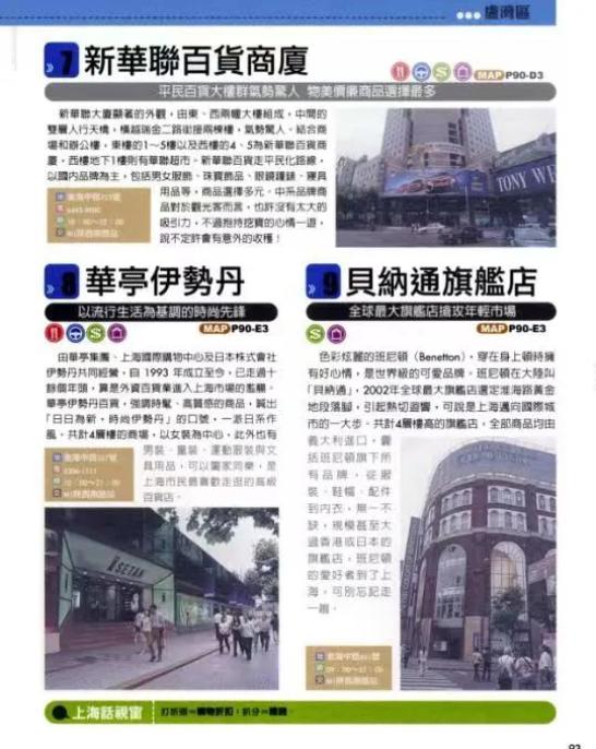 出现在旅行指南中的还有2002年,在淮海路思南路口开出的贝纳通旗舰店。它的上海首店早在10年前就已经开出了。