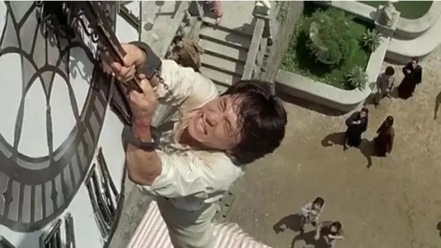 时间扳回到1983年,成龙自导自演《A计划》,其中有一个危险镜头:从15米高的钟楼上跳下来。当时成龙连续去片场六天,都不敢往下跳,直到第七天被洪金宝一顿臭骂,才下定决心一跃而下,最终颈骨重伤,鼻骨撞裂。