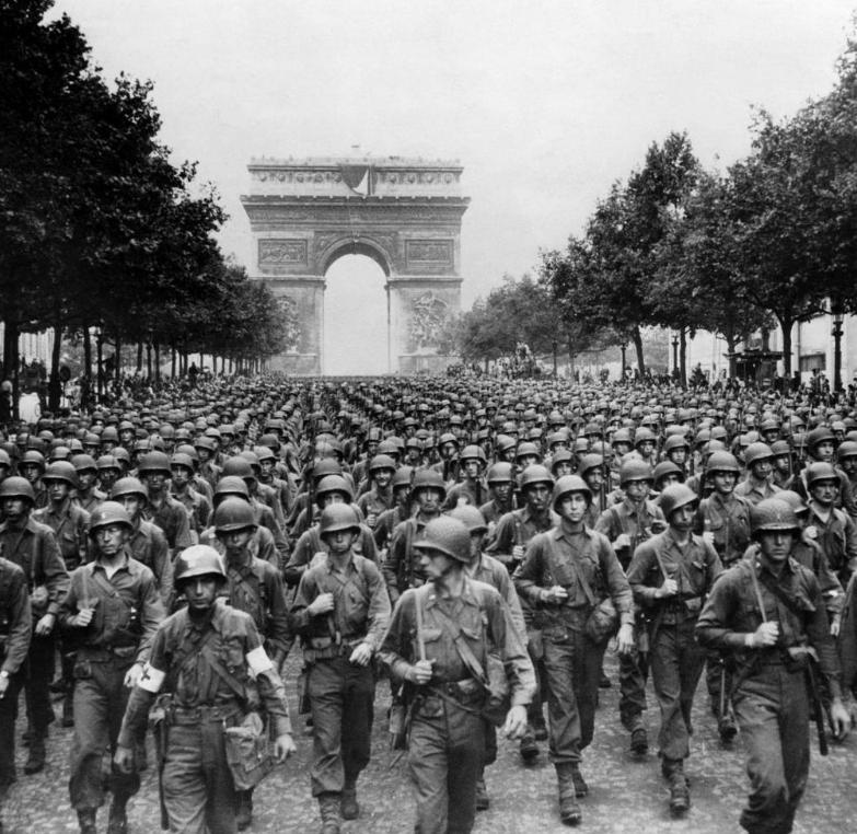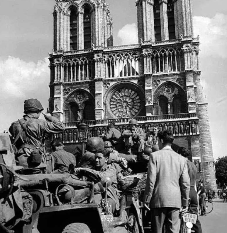 ◇ 在巴黎圣母院前的盟军士兵