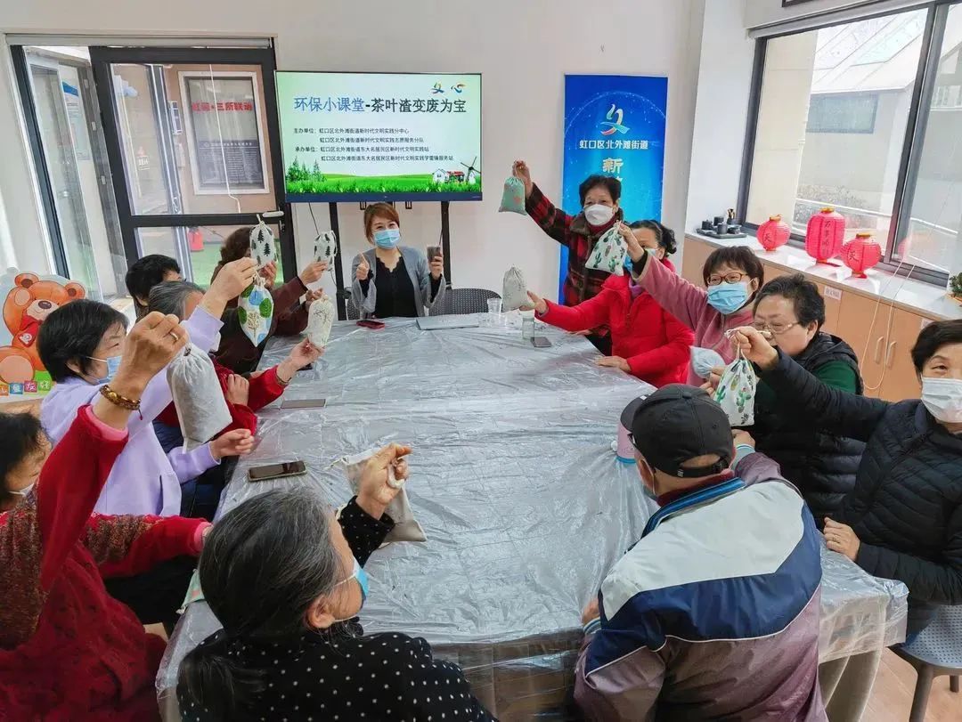 “泡过的茶叶晒干后,用小袋子装好,放在卫生间、厨房等地,具有除臭效果。”在北外滩东大名社区,居民们正在专业老师的指导下,动手做起了茶叶香包,变废为宝。