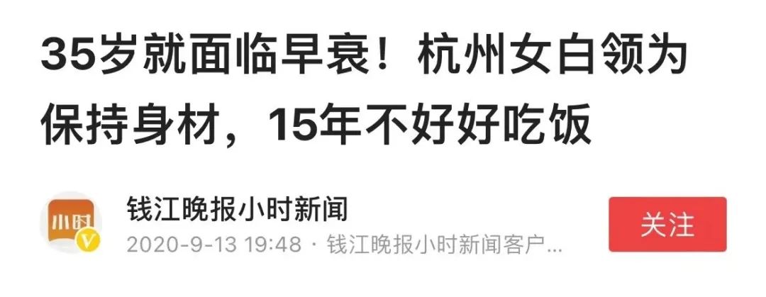 曾看过这样一则新闻:浙江杭州一位35岁的女白领为了保持身材,长期对自己的饮食进行严格控制:15年来,都坚持着“少吃主食”的原则。