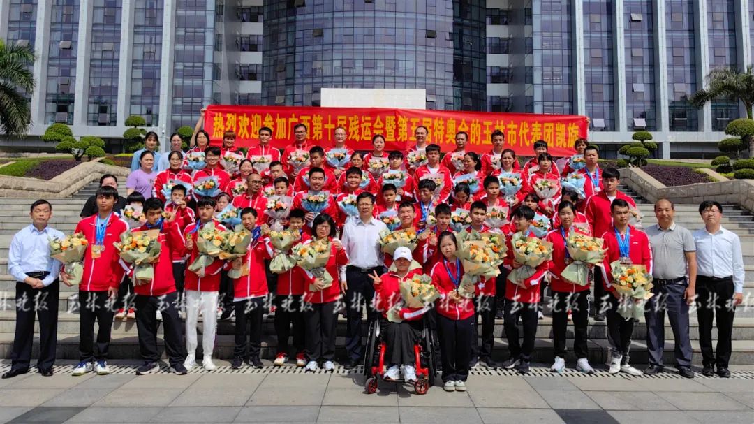 4月16日,广西第十届残疾人运动会暨第五届特殊奥林匹克运动会玉林市代表团载誉回到玉林。