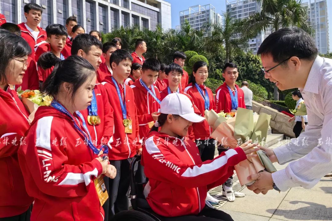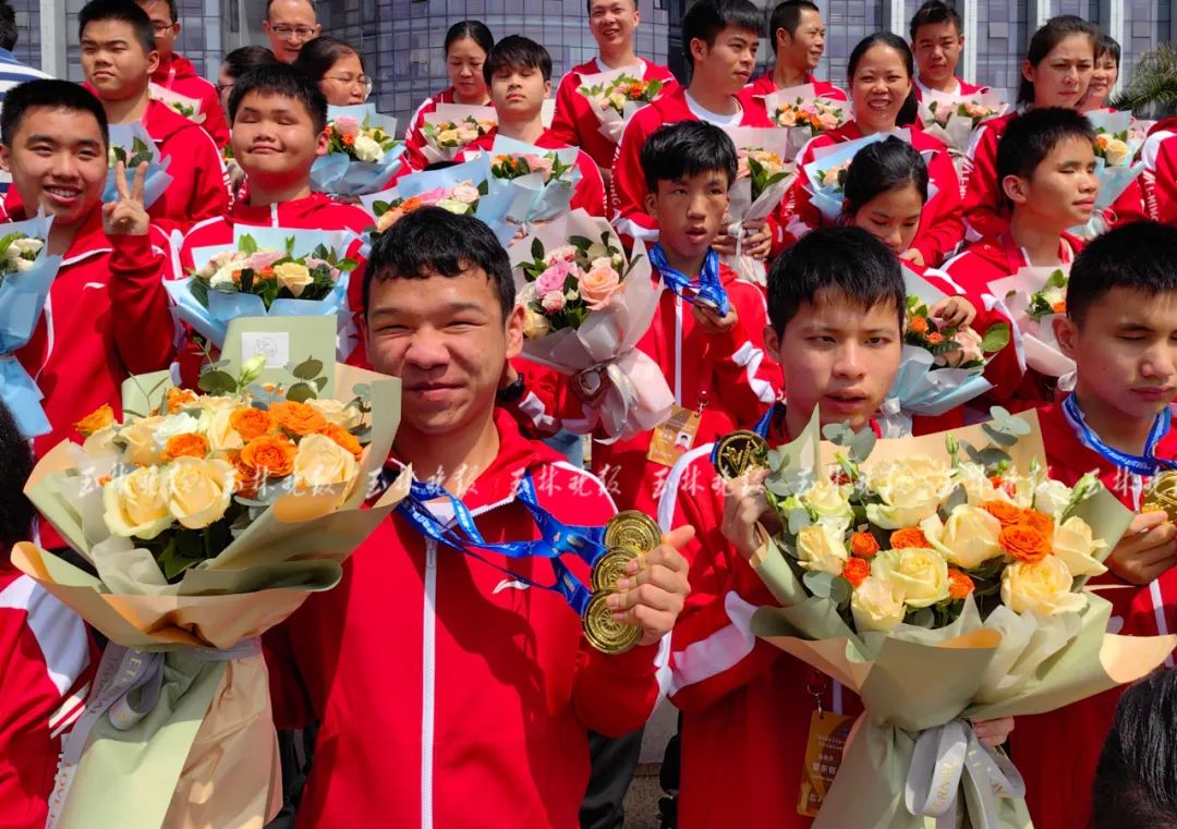 参加广西第十届残运会暨第五届特奥会载誉凯旋的玉林运动员。