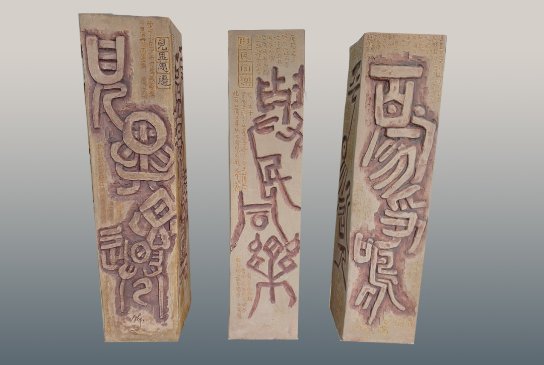 此作品用淄博当地原矿陶泥,采用泥板成型方法,内容以齐文化为主题,用四字成语展开设计,成语都是出自齐文化典故成语,用陶刻的形式进行装饰,大字用书法里的篆书表现,穿插的小字用篆刻里边款的单刀刻法表现。