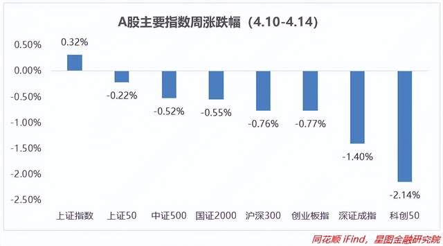 上周A股互有涨跌,风格再次分化。从量能上看周内所有交易日均突破万亿,市场成交热情度依旧维持高涨。上证指数首个交易日高开低走,但随后的几个交易日都没有跌破前周的顶部,支撑力度较强。深证成指、创业板指前几周上涨趋势不再,周内转头向下,从周线上看也并没有突破前周的顶部,两大指数基本抹平前周的涨幅。北向资金在节后先流出后流入,且回流幅度较大,尤其是最后一个交易日,表明对A股的看好。周内芯片、医药、传媒以及大票活跃,上证指数以及大票指数领涨。其余指数差别不大。