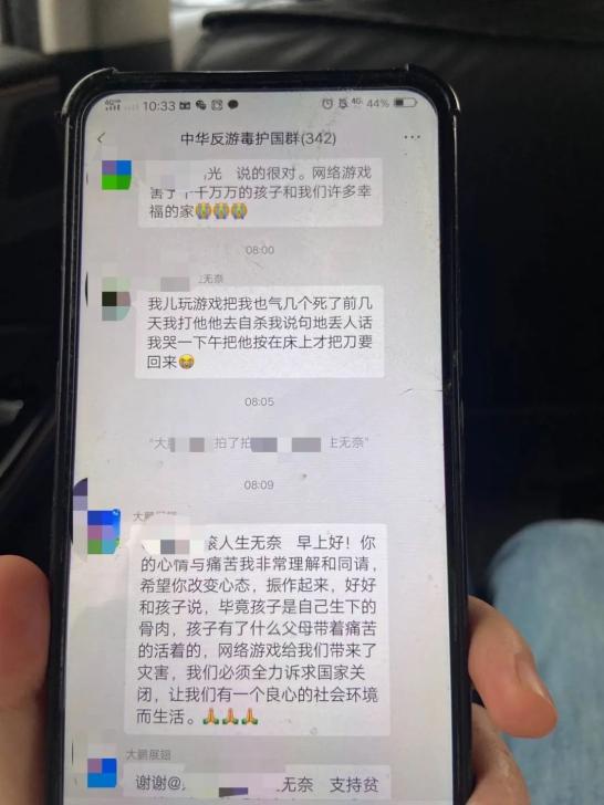 几年前通过偶然的机会入群,地板哥所有的疑惑和不甘都找到了出口,“之前我怪过小孩不懂事,怨爹娘没带好,后悔没把他带在身边。自从进了这个群,发现原来千千万万的孩子都被游戏害了,我才知道游戏的危害性!”